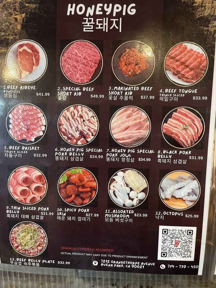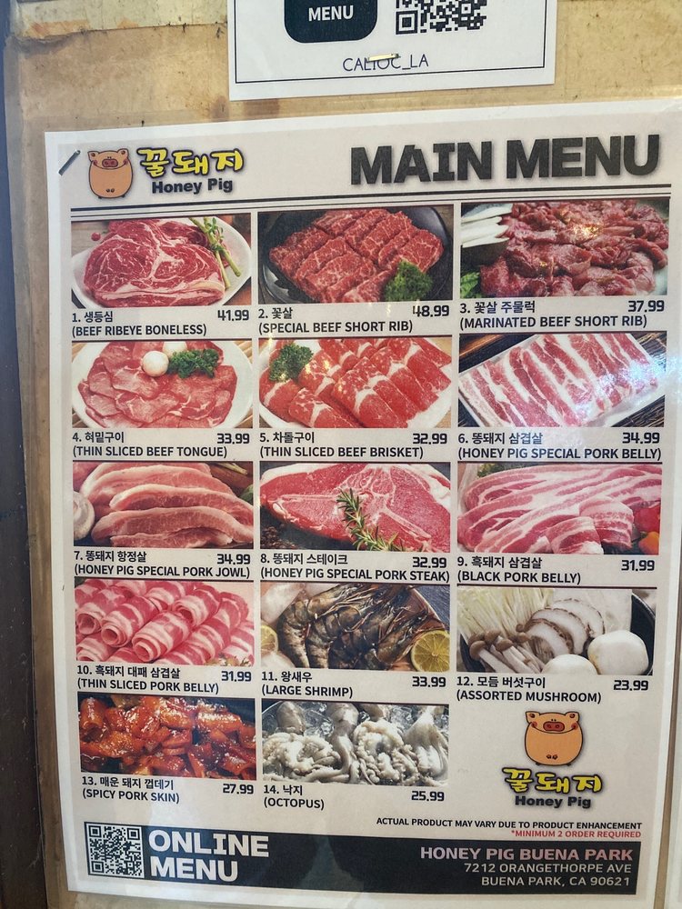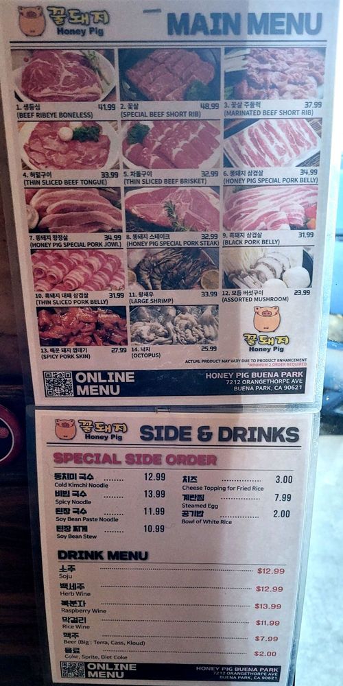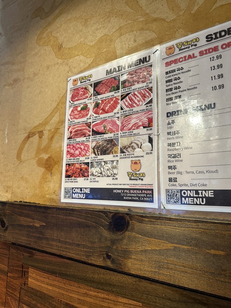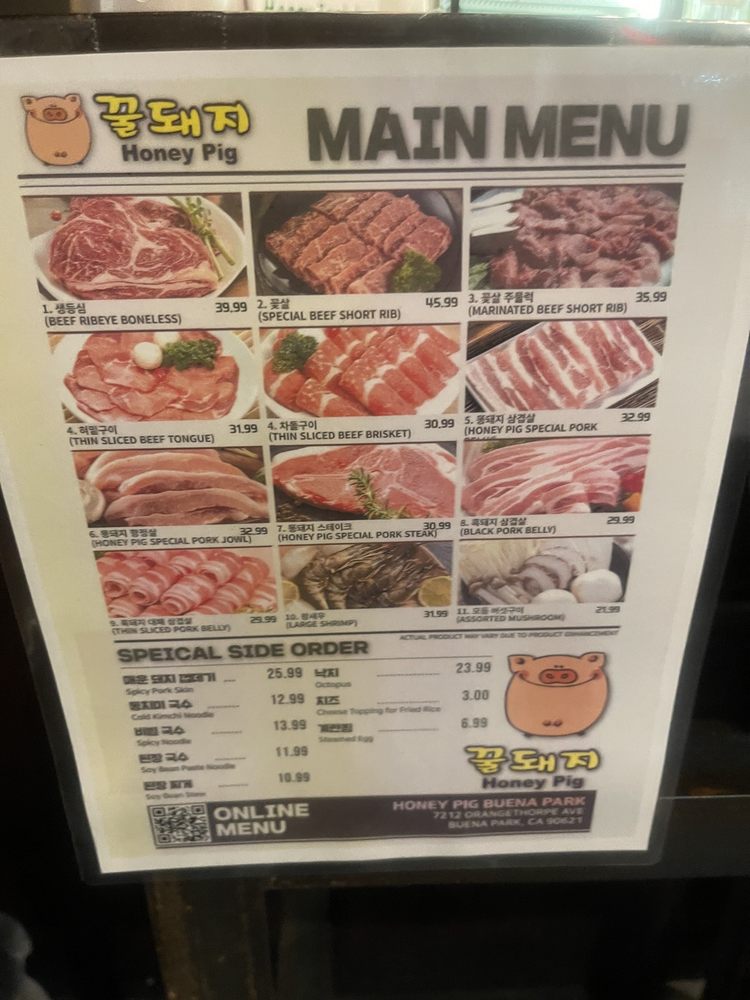 Introducing the menu at Honey Pig - Buena Park, a casual and trendy Korean BBQ spot that offers a wide range of options. The restaurant features many vegetarian choices, making it ideal for groups and families. With its wheelchair accessibility and waiter service, Honey Pig caters to various dining needs. Customers rave about the pork belly and beef brisket, praising the flavorful meats and attentive service. Some patrons recommend arriving early to avoid the crowds, while others note the greasy ambiance as a minor drawback. Despite the higher prices, the quality of the food and top-notch customer service make Honey Pig a must-visit for Korean BBQ enthusiasts in the Buena Park area.